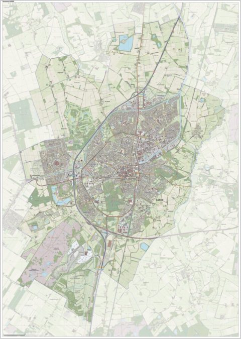 Gemeentekaart Assen, volgens de veelgebruikte TopoPlus-opmaak. Peildatum: juni 2023.