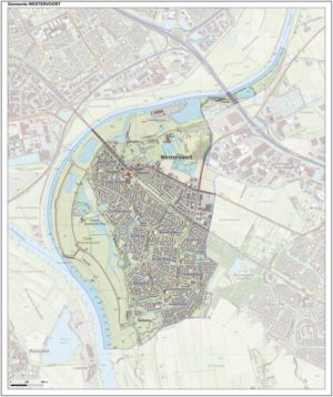 Gemeentekaart Westervoort, volgens de veelgebruikte TopoPlus-opmaak. Peildatum: juni 2023.