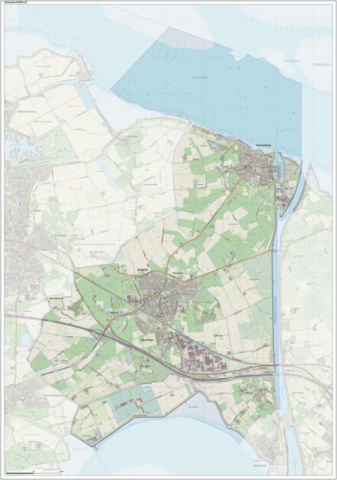 Gemeentekaart Kapelle, volgens de veelgebruikte TopoPlus-opmaak. Peildatum: juni 2023.