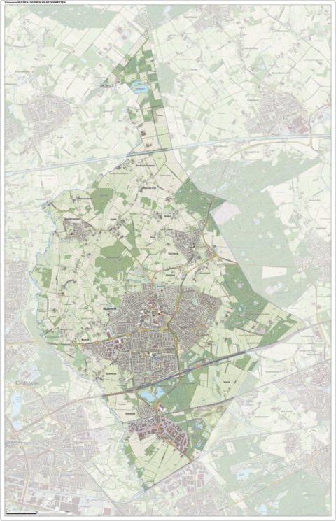 Gemeentekaart Nuenen c.a., volgens de veelgebruikte TopoPlus-opmaak. Peildatum: juni 2023.