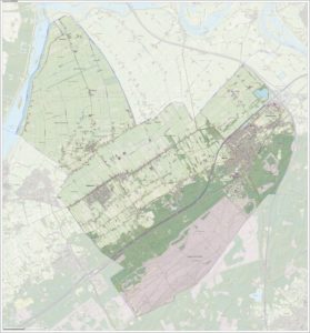 Gemeentekaart Oegstgeest, volgens de veelgebruikte TopoPlus-opmaak. Peildatum: juni 2023.