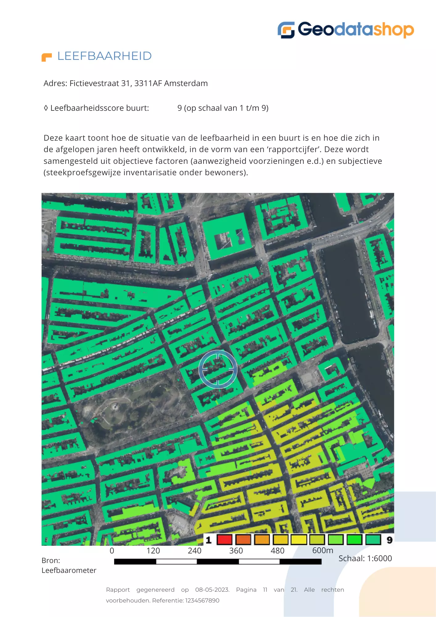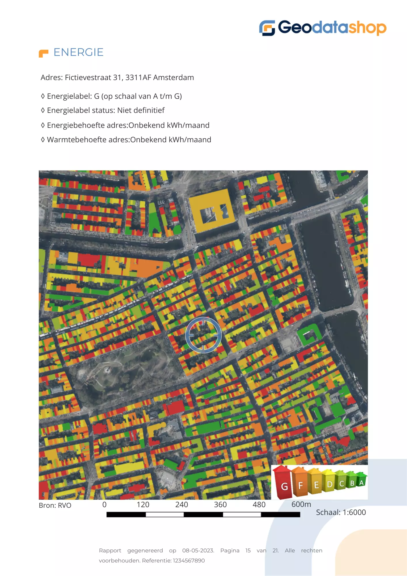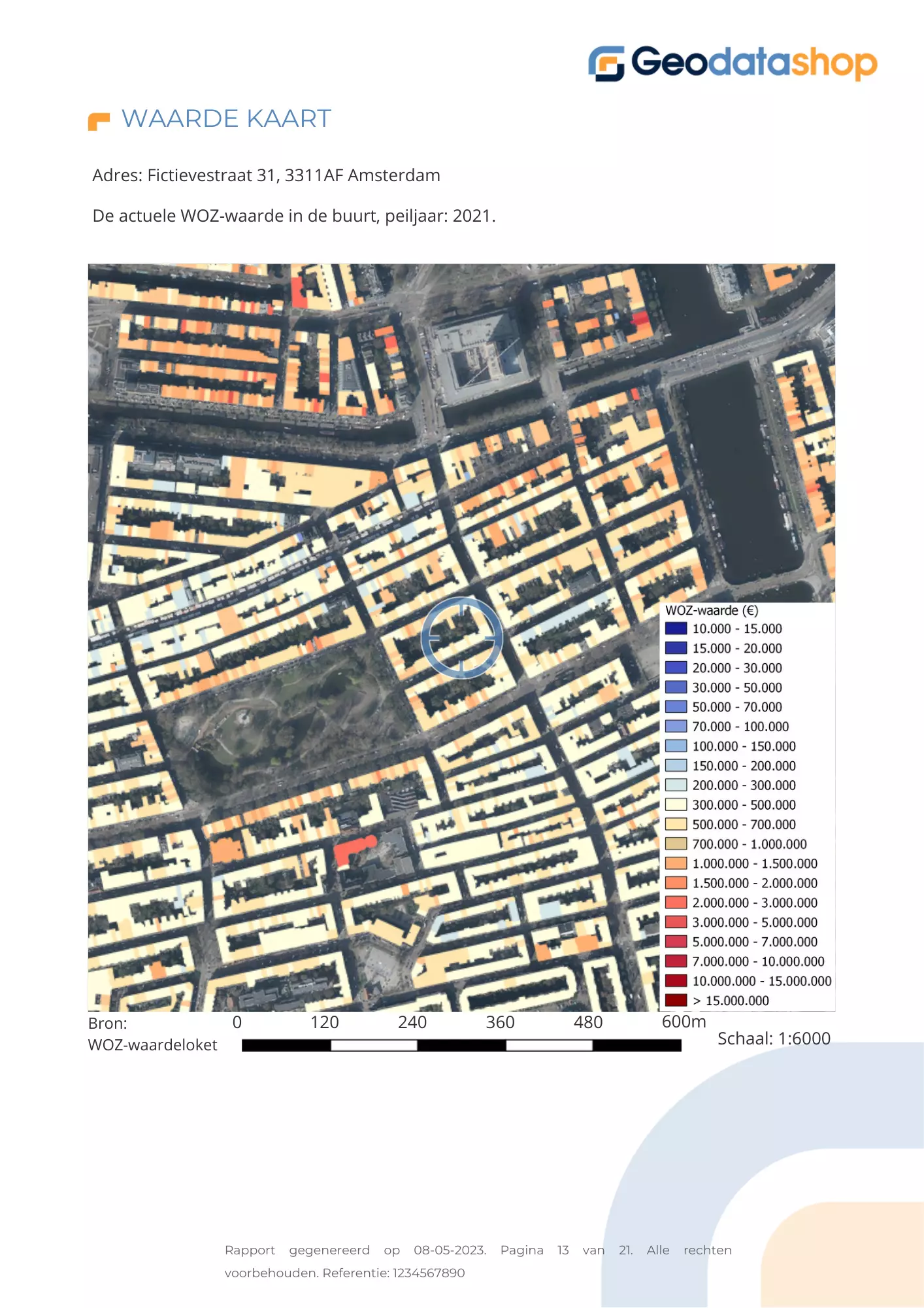 Het rapport bevat waardevolle informatie over het geselecteerde adres, zoals: