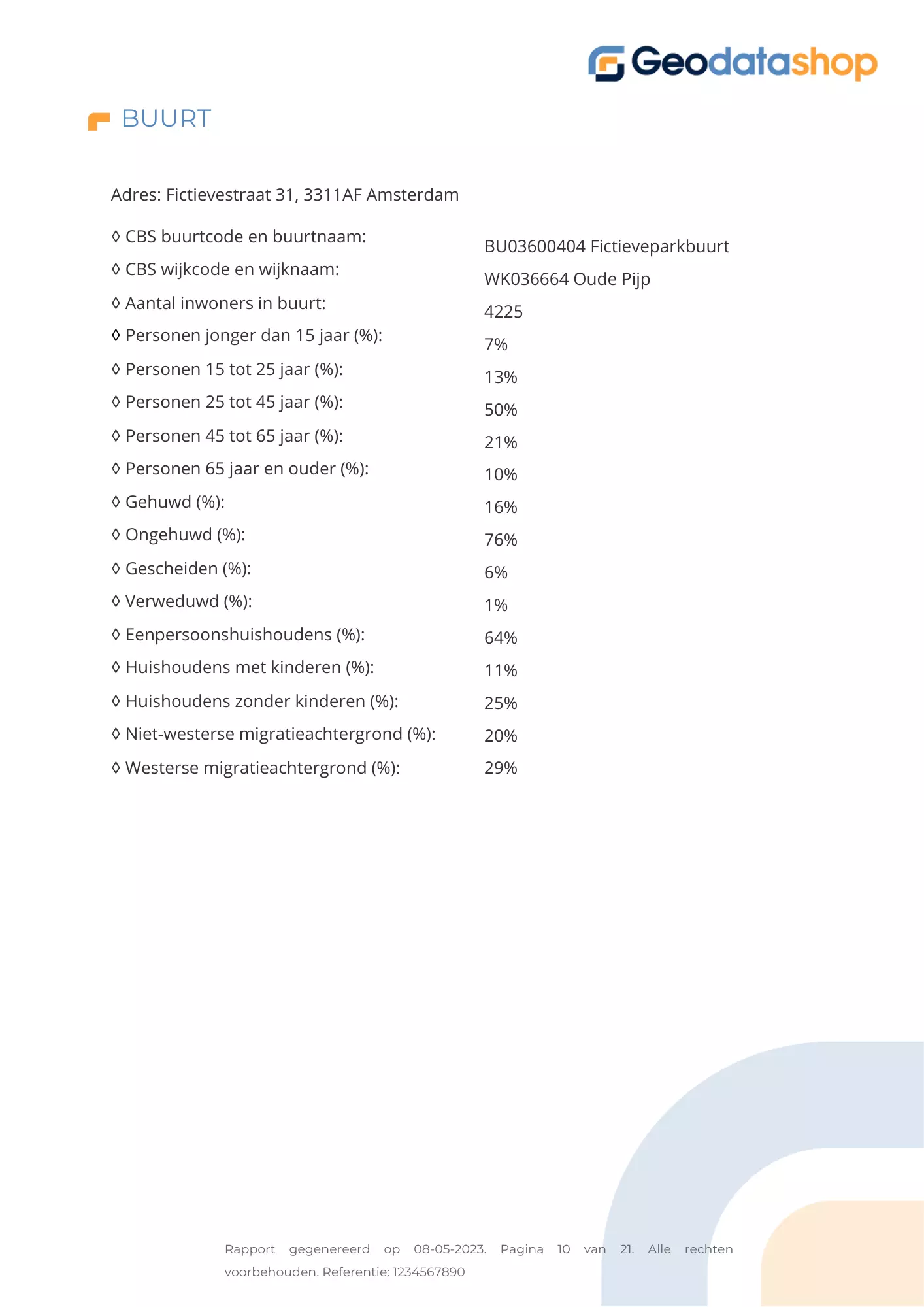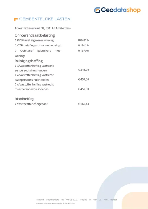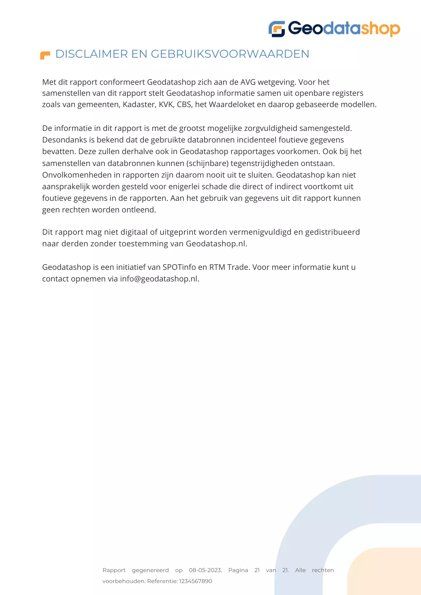 Het rapport bevat waardevolle informatie over het geselecteerde adres, zoals: