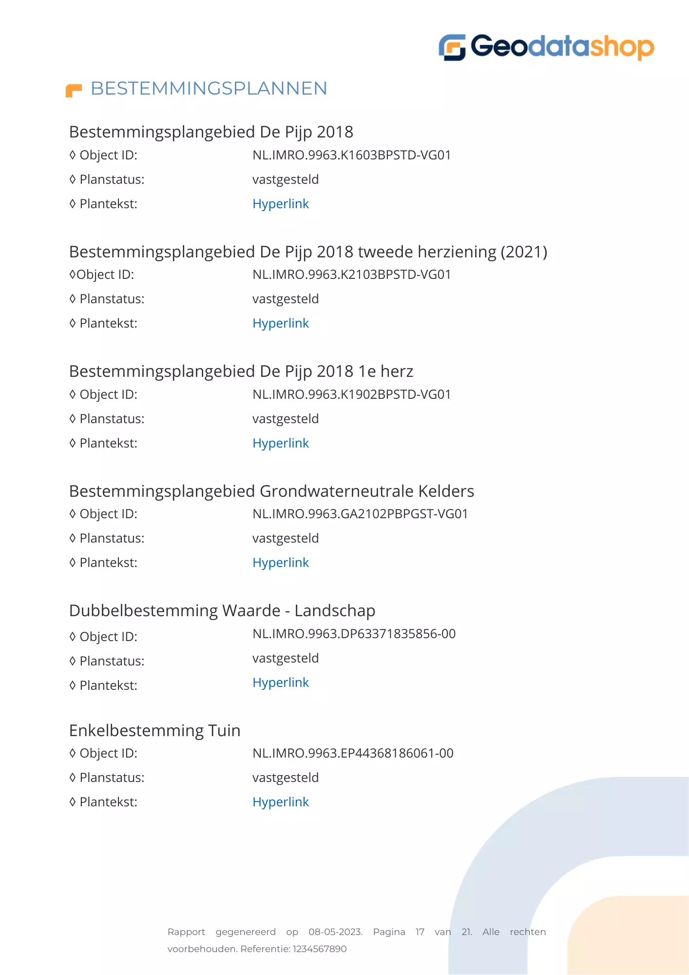 - Bestemmingsplan rapport: Dit rapport biedt inzicht in de bestemmingsplannen van het adres.