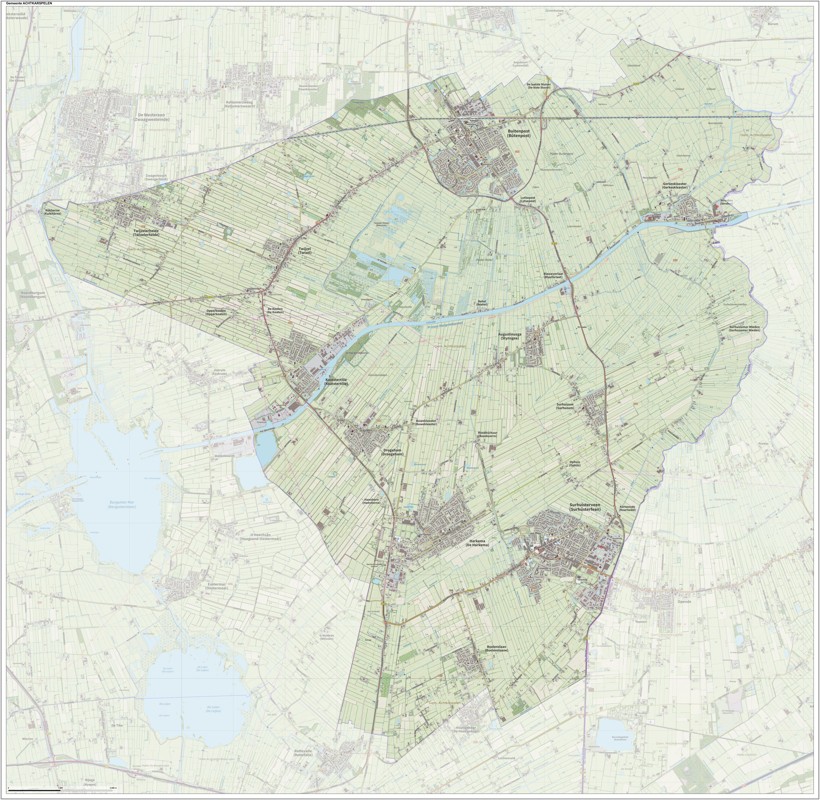Gemeentekaart Achtkarspelen, volgens de veelgebruikte TopoPlus-opmaak. Peildatum: juni 2023.