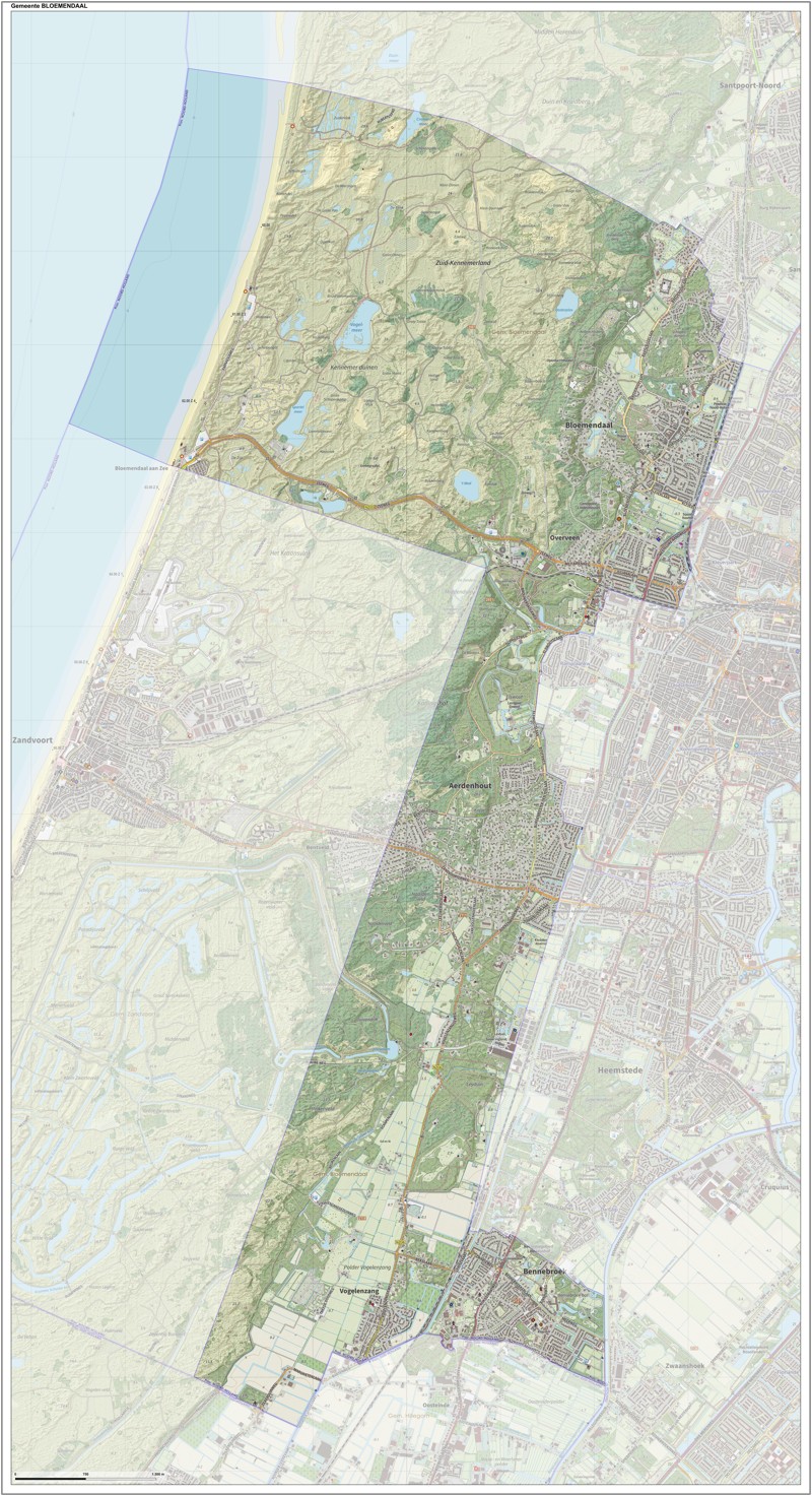 Gemeentekaart Bloemendaal, volgens de veelgebruikte TopoPlus-opmaak. Peildatum: juni 2023.