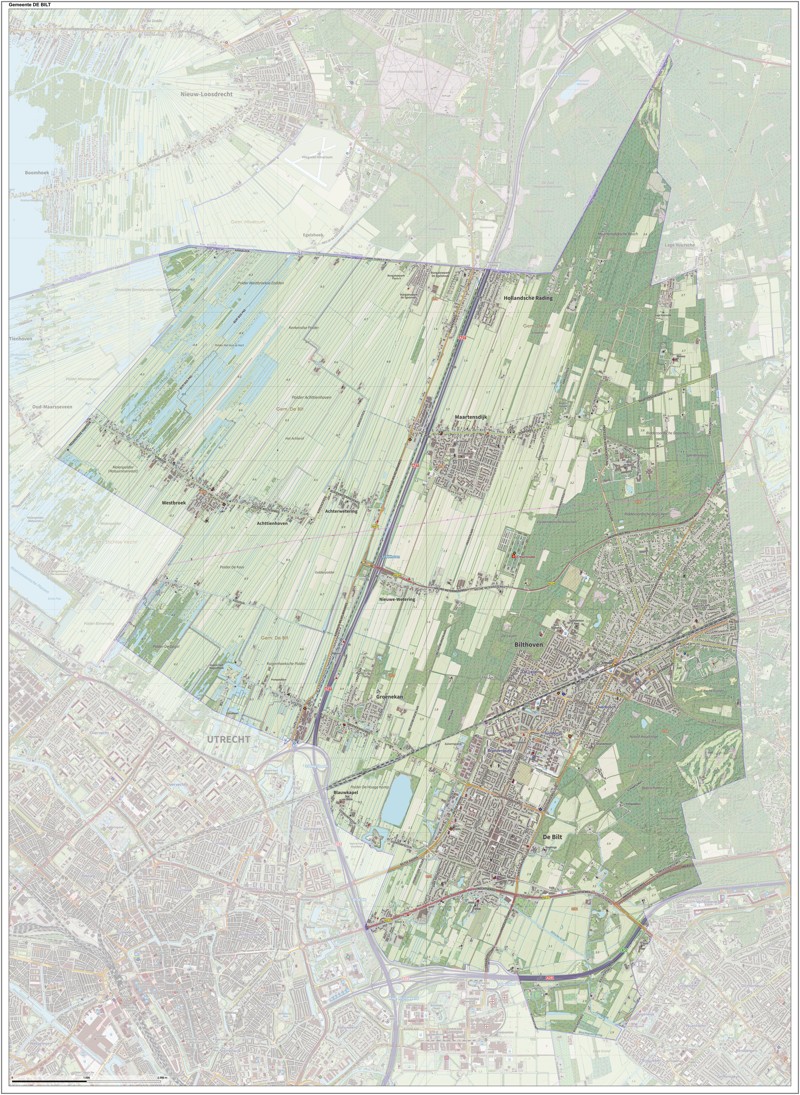 Gemeentekaart De Bilt, volgens de veelgebruikte TopoPlus-opmaak. Peildatum: juni 2023.