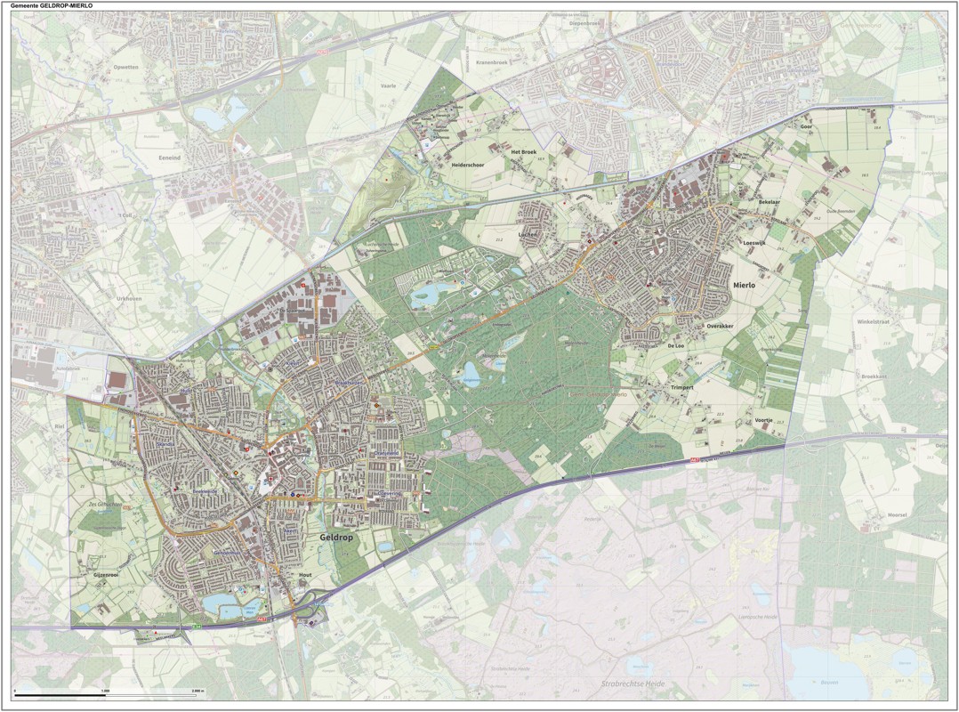Gemeentekaart Geldrop-Mierlo, volgens de veelgebruikte TopoPlus-opmaak. Peildatum: juni 2023.