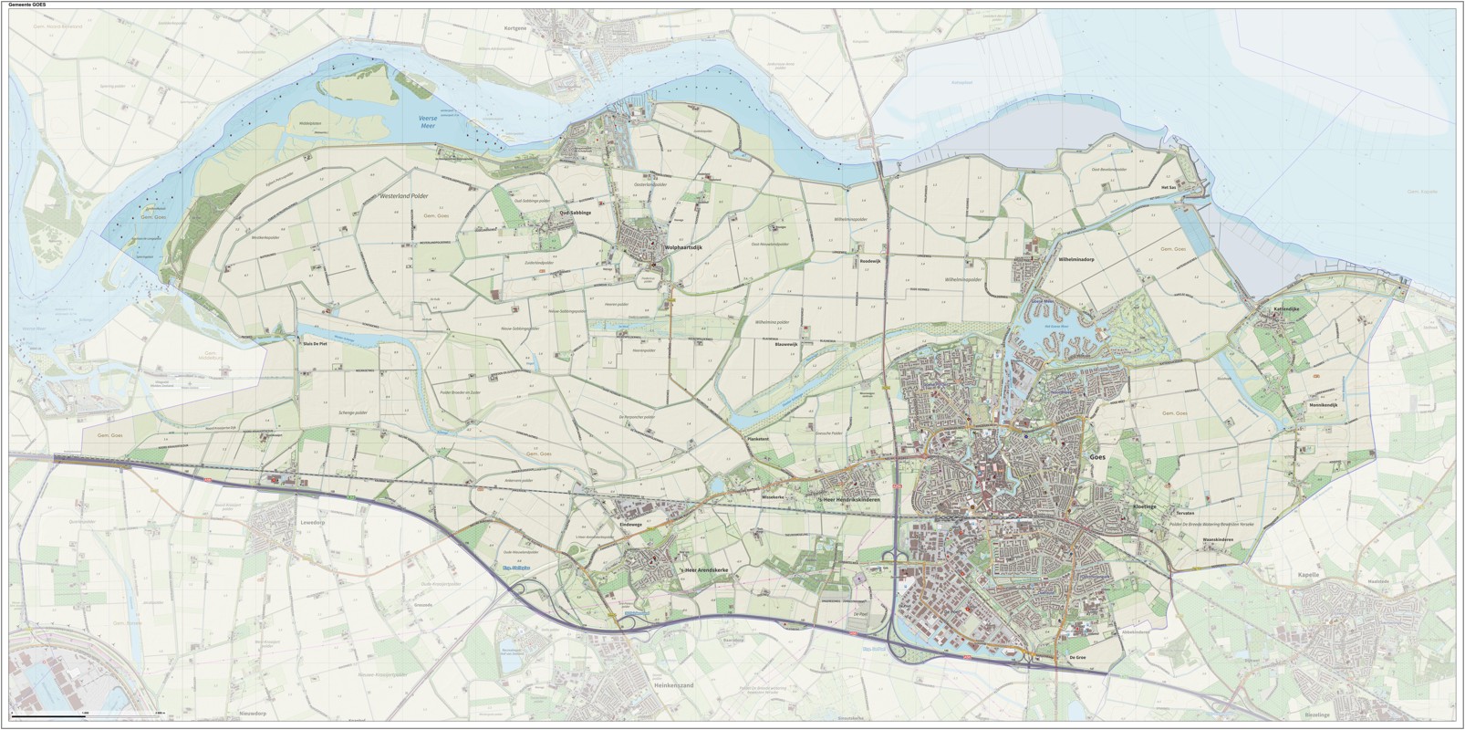Gemeentekaart Goes, volgens de veelgebruikte TopoPlus-opmaak. Peildatum: juni 2023.