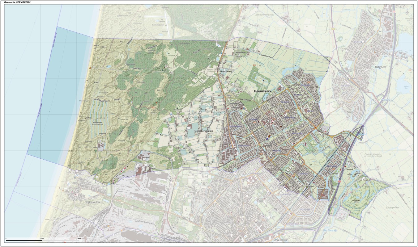 Gemeentekaart Heemskerk, volgens de veelgebruikte TopoPlus-opmaak. Peildatum: juni 2023.