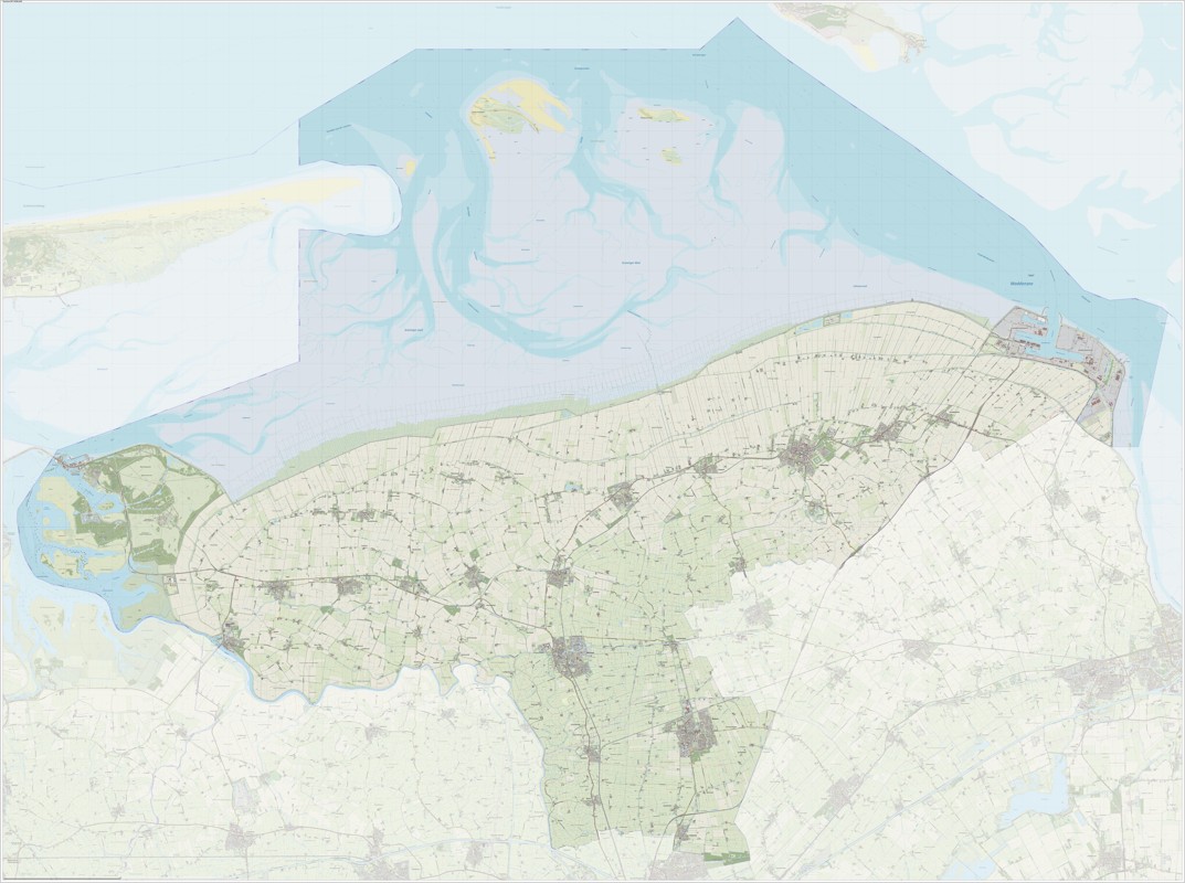 Gemeentekaart Het Hogeland, volgens de veelgebruikte TopoPlus-opmaak. Peildatum: juni 2023.