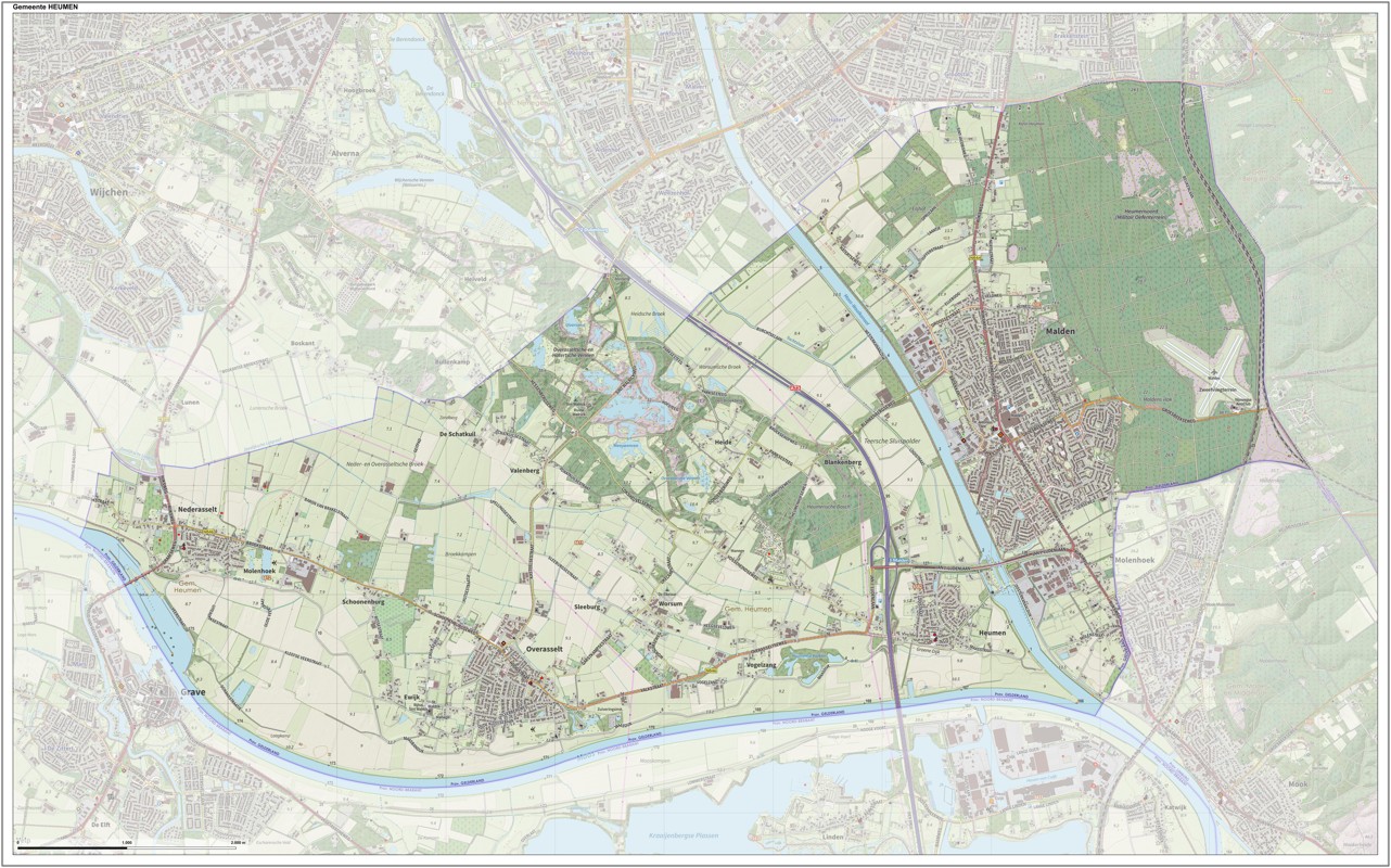 Gemeentekaart Heumen, volgens de veelgebruikte TopoPlus-opmaak. Peildatum: juni 2023.