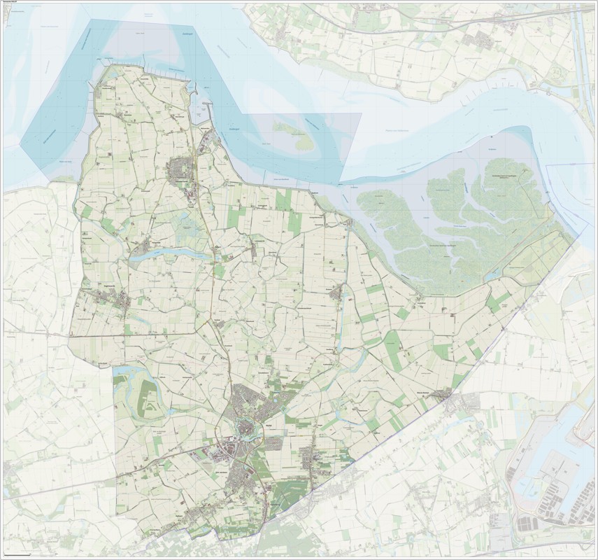 Gemeentekaart Hulst, volgens de veelgebruikte TopoPlus-opmaak. Peildatum: juni 2023.