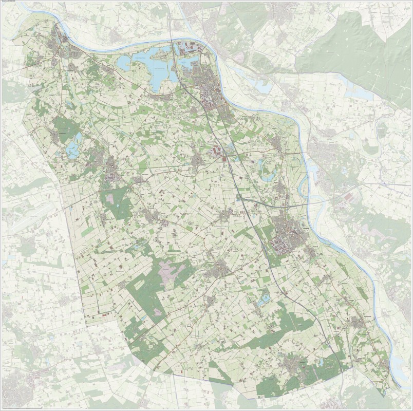 Gemeentekaart Land van Cuijk, volgens de veelgebruikte TopoPlus-opmaak. Peildatum: juni 2023.