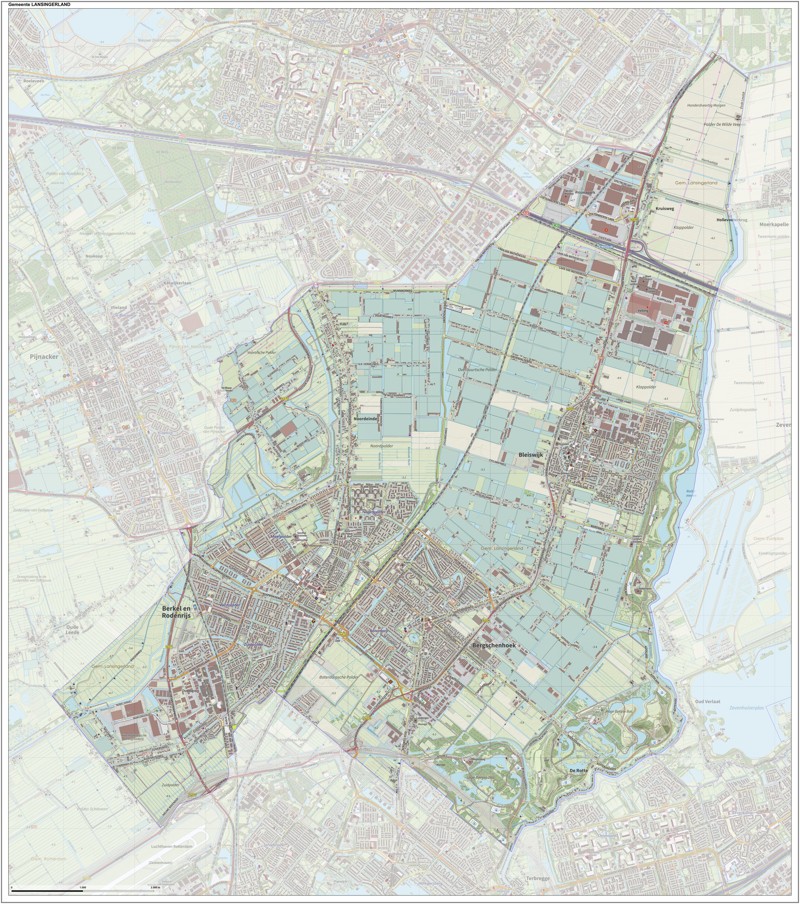 Gemeentekaart Lansingerland, volgens de veelgebruikte TopoPlus-opmaak. Peildatum: juni 2023.