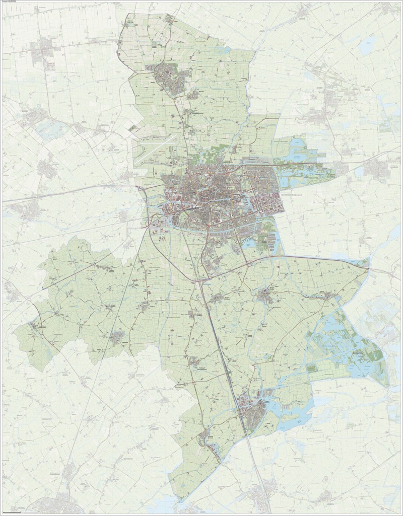 Gemeentekaart Leeuwarden, volgens de veelgebruikte TopoPlus-opmaak. Peildatum: juni 2023.