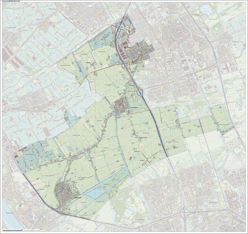 Gemeentekaart Midden-Delfland, volgens de veelgebruikte TopoPlus-opmaak. Peildatum: juni 2023.