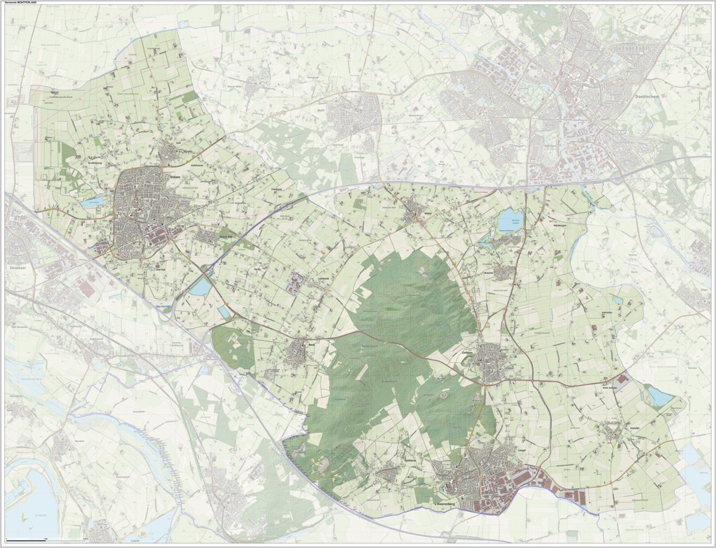 Gemeentekaart Montferland, volgens de veelgebruikte TopoPlus-opmaak. Peildatum: juni 2023.