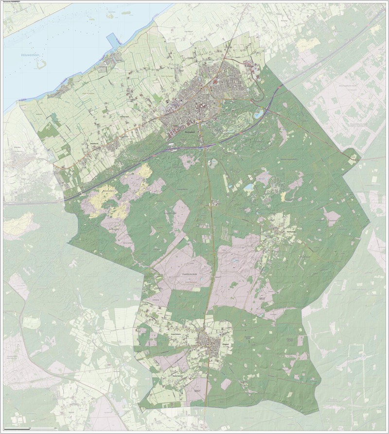 Gemeentekaart Nunspeet, volgens de veelgebruikte TopoPlus-opmaak. Peildatum: juni 2023.
