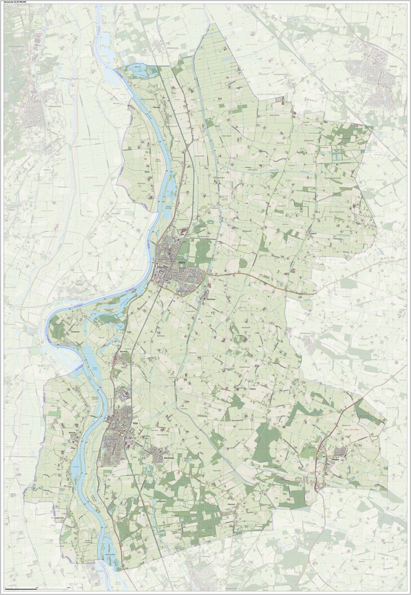 Gemeentekaart Olst-Wijhe, volgens de veelgebruikte TopoPlus-opmaak. Peildatum: juni 2023.