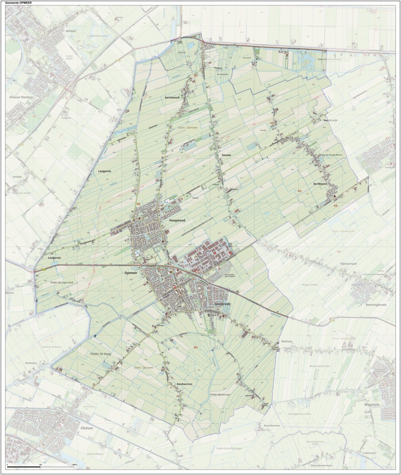Gemeentekaart Opmeer, volgens de veelgebruikte TopoPlus-opmaak. Peildatum: juni 2023.