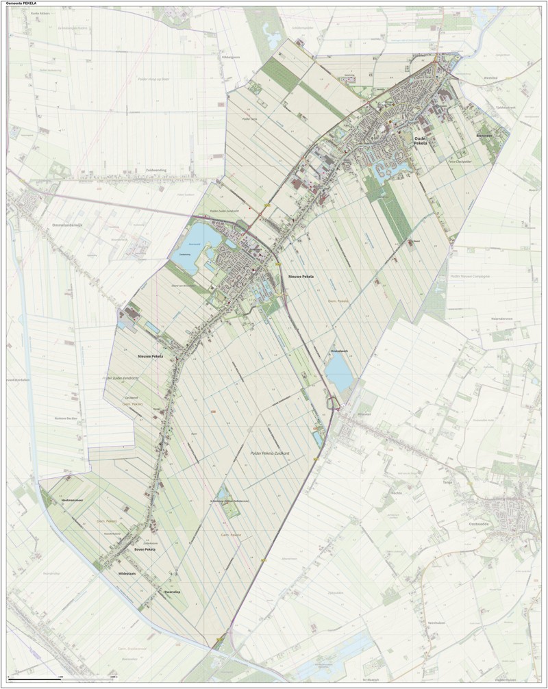 Gemeentekaart Pekela, volgens de veelgebruikte TopoPlus-opmaak. Peildatum: juni 2023.