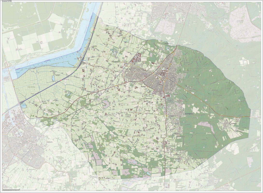 Gemeentekaart Putten, volgens de veelgebruikte TopoPlus-opmaak. Peildatum: juni 2023.