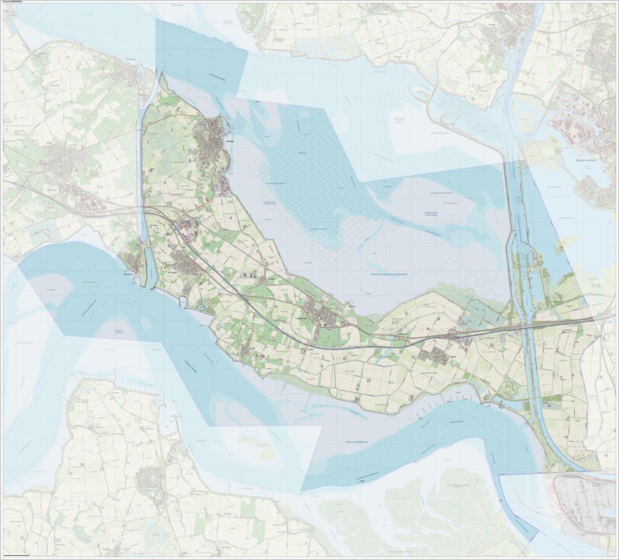 Gemeentekaart Reimerswaal, volgens de veelgebruikte TopoPlus-opmaak. Peildatum: juni 2023.