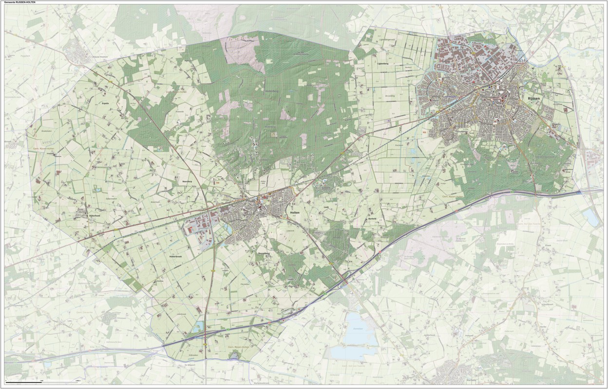 Gemeentekaart Rijssen-Holten, volgens de veelgebruikte TopoPlus-opmaak. Peildatum: juni 2023.