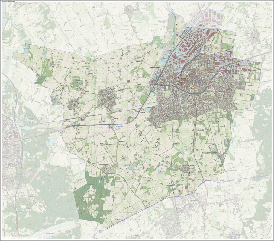 Gemeentekaart Roosendaal, volgens de veelgebruikte TopoPlus-opmaak. Peildatum: juni 2023.