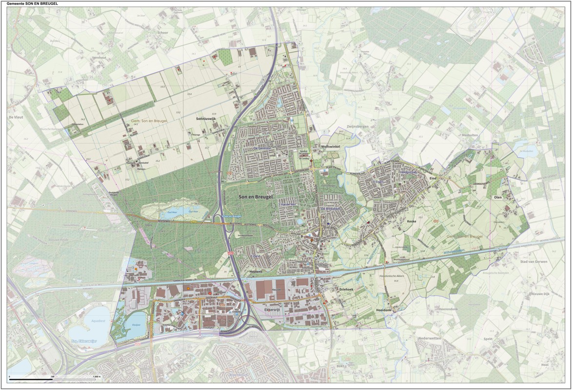 Gemeentekaart Son en Breugel, volgens de veelgebruikte TopoPlus-opmaak. Peildatum: juni 2023.