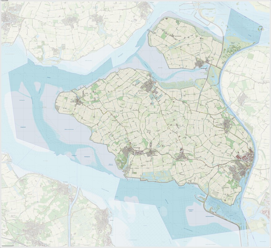 Gemeentekaart Tholen, volgens de veelgebruikte TopoPlus-opmaak. Peildatum: juni 2023.