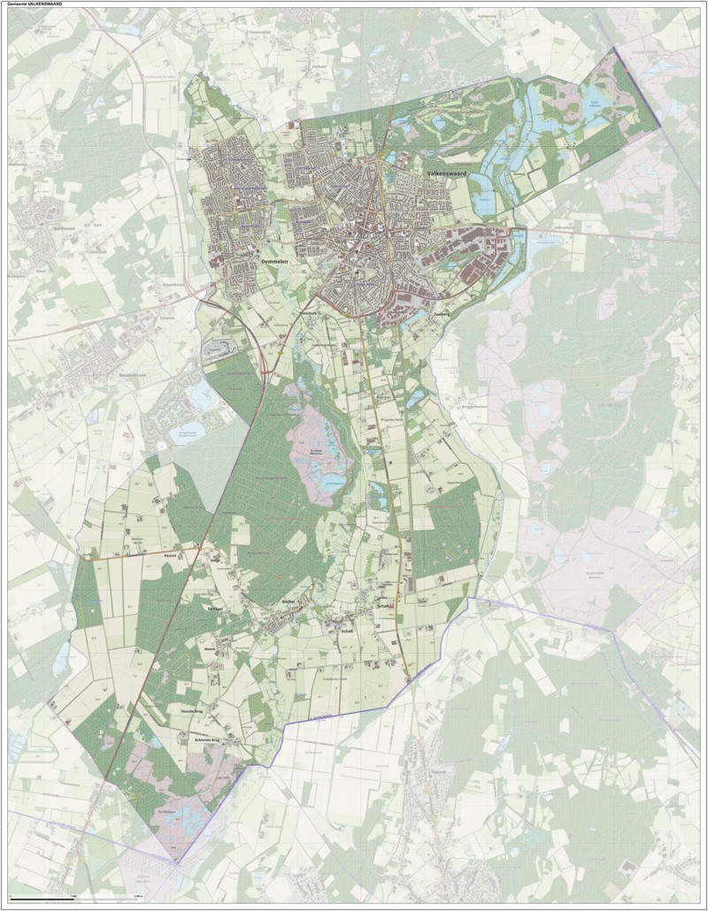 Gemeentekaart Valkenswaard, volgens de veelgebruikte TopoPlus-opmaak. Peildatum: juni 2023.