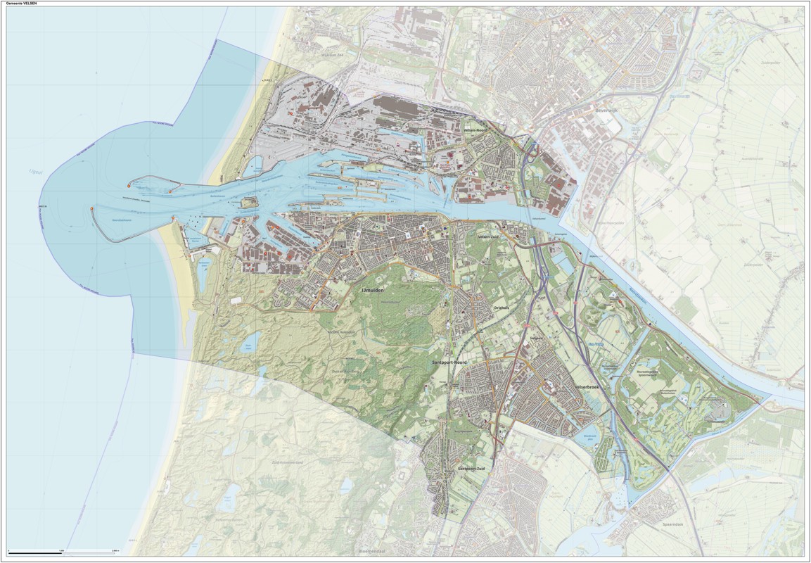 Gemeentekaart Velsen, volgens de veelgebruikte TopoPlus-opmaak. Peildatum: juni 2023.