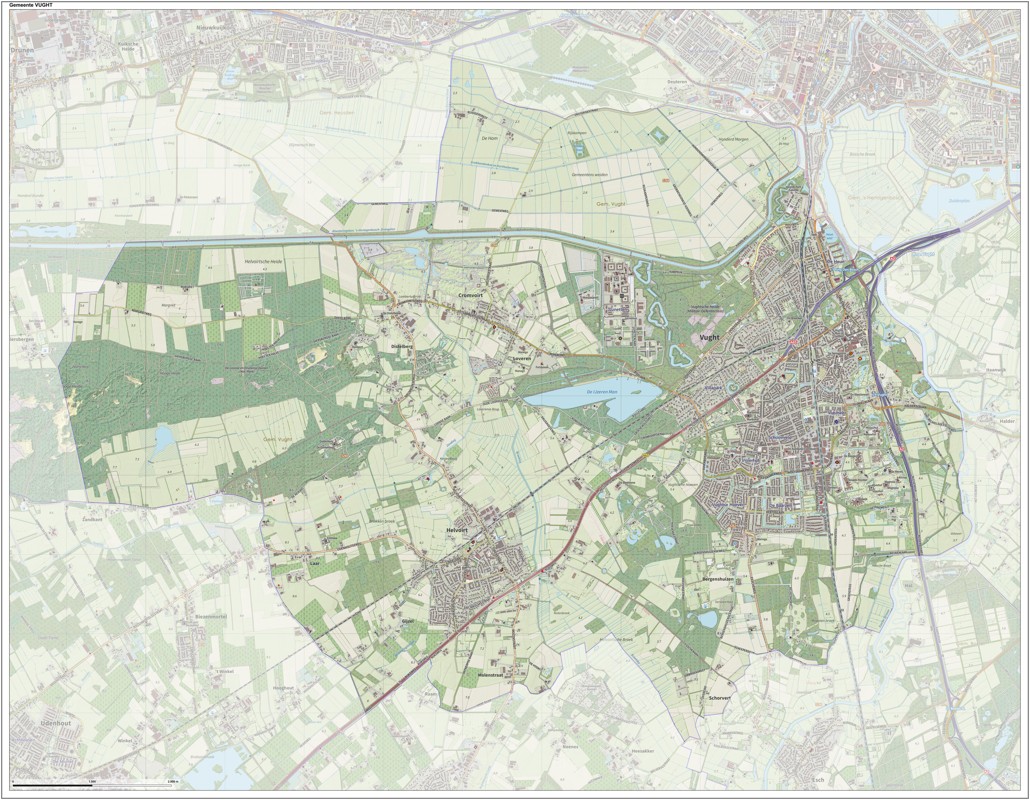 Gemeentekaart Vught, volgens de veelgebruikte TopoPlus-opmaak. Peildatum: juni 2023.