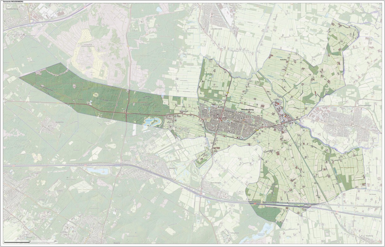 Gemeentekaart Woudenberg, volgens de veelgebruikte TopoPlus-opmaak. Peildatum: juni 2023.